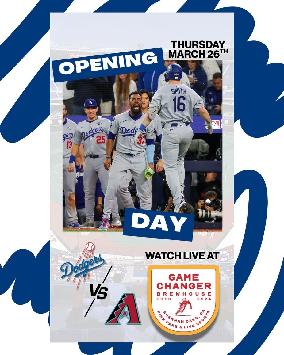 Baseball is back. Join us at Game Changer Brewhouse for Opening Day as the Los Angeles Dodgers kick off the season on March 26th.