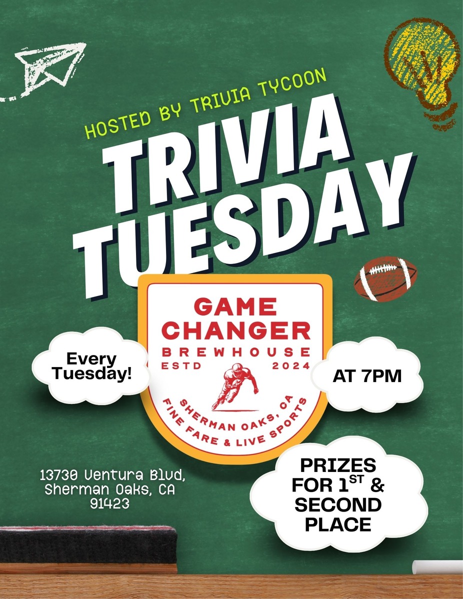 Put your knowledge to the test every Tuesday at 7PM at Game Changer Brewhouse for Trivia Tuesday.