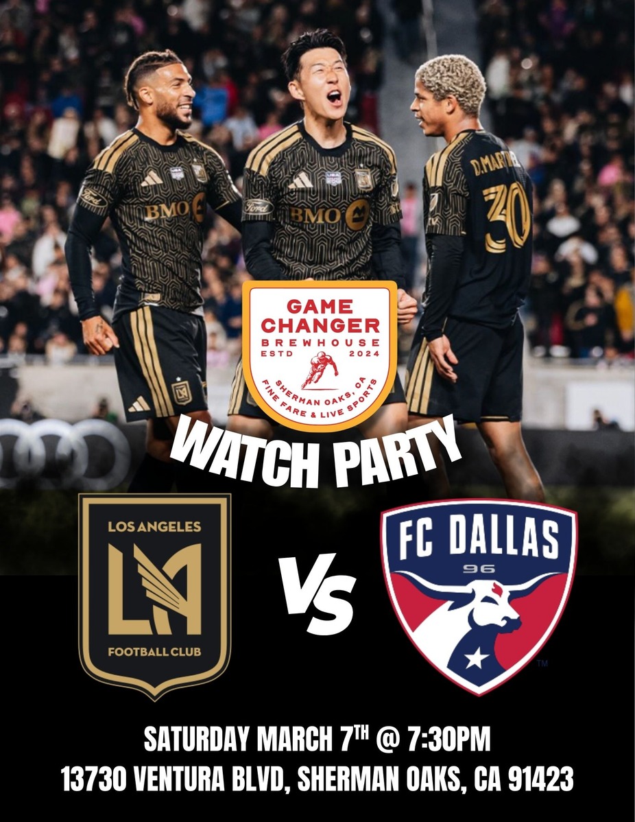 Join us at Game Changer Brewhouse for an exciting MLS showdown as Los Angeles FC takes on FC Dallas on Saturday, March 7th at 7:30PM.