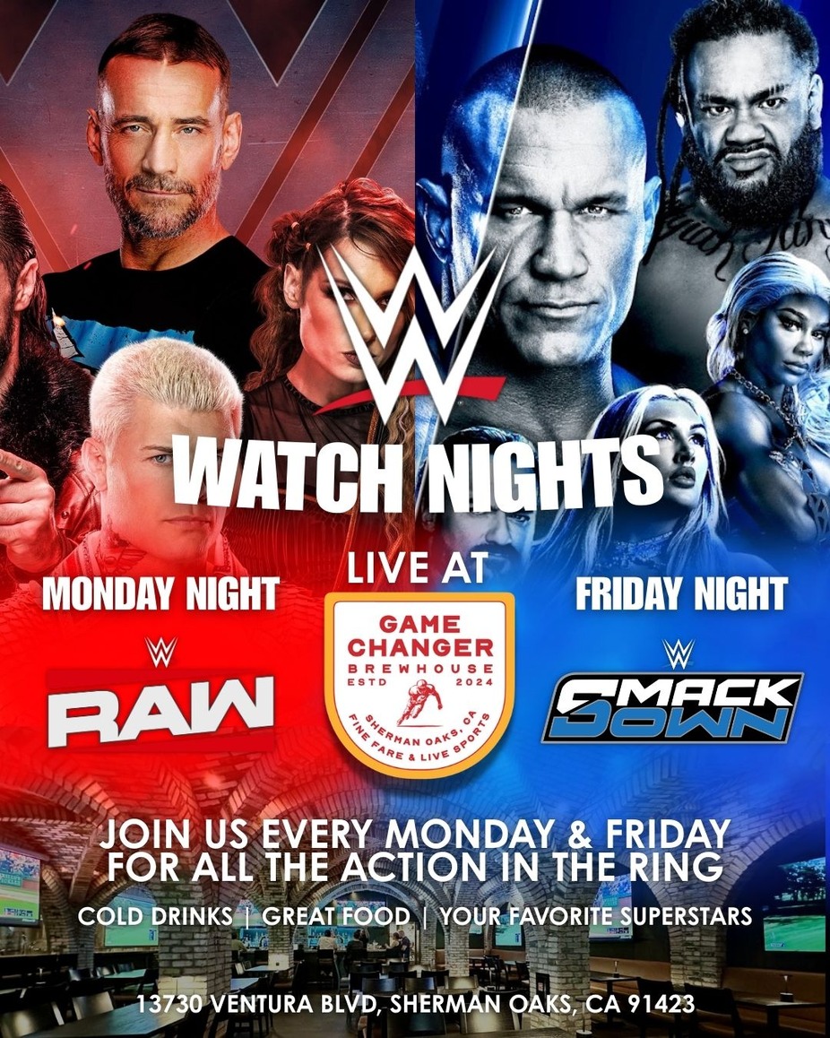 Join us for Monday Night RAW and Friday Night SmackDown on our big screens with full audio, cold drinks, and elevated game-day bites. Whether it’s title matches, surprise returns, or main-event showdowns, this is your official wrestling headquarters in Sherman Oaks.