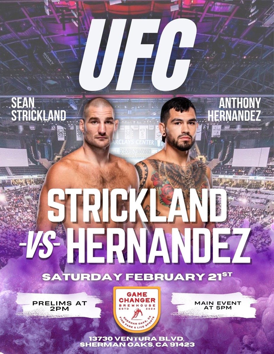 UFC Fight Night: Strickland vs. Hernandez — Next Saturday 🥊🔥 Fight night comes to Houston’s Toyota Center with Sean Strickland vs. Anthony Hernandez headlining UFC Fight Night — two top middleweights bringing nonstop action. We’ll have every striking exchange and submission attempt on wall-to-wall screens with full fight sound at Game Changer Brewhouse. Rally the crew, crush knockout bites and ice-cold drinks, and reserve your table now for UFC Fight Night: Strickland vs. Hernandez!