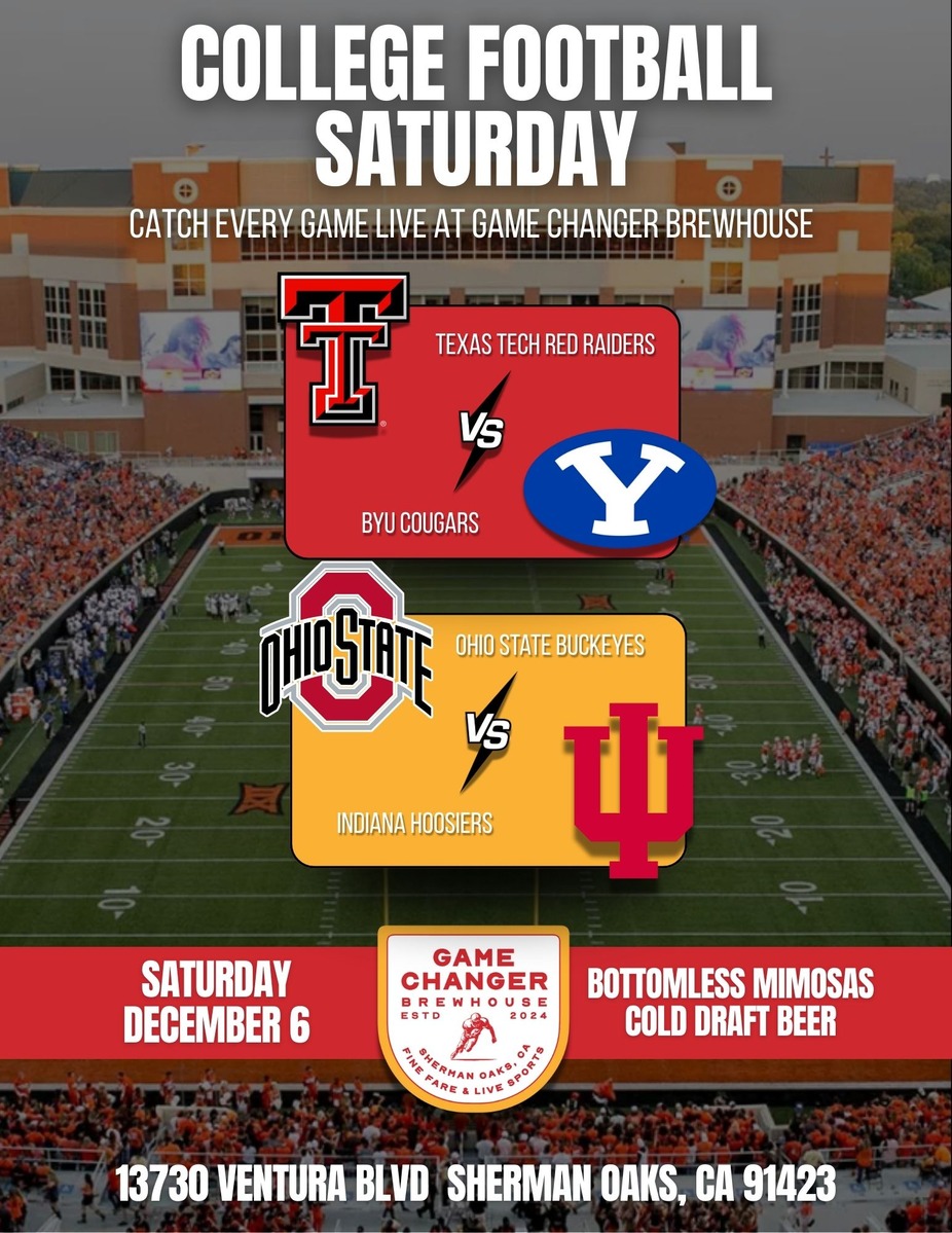 From early kickoffs to primetime thrillers, this Saturday is wall-to-wall college football and we’ve got every snap on big screens with full game sound. Rep your colors, bring the crew, and crush fan-favorite bites with ice-cold drinks while the rankings get shaken up. The energy’s elite and the seats go quick—reserve your table now for College GameDay Saturday!
